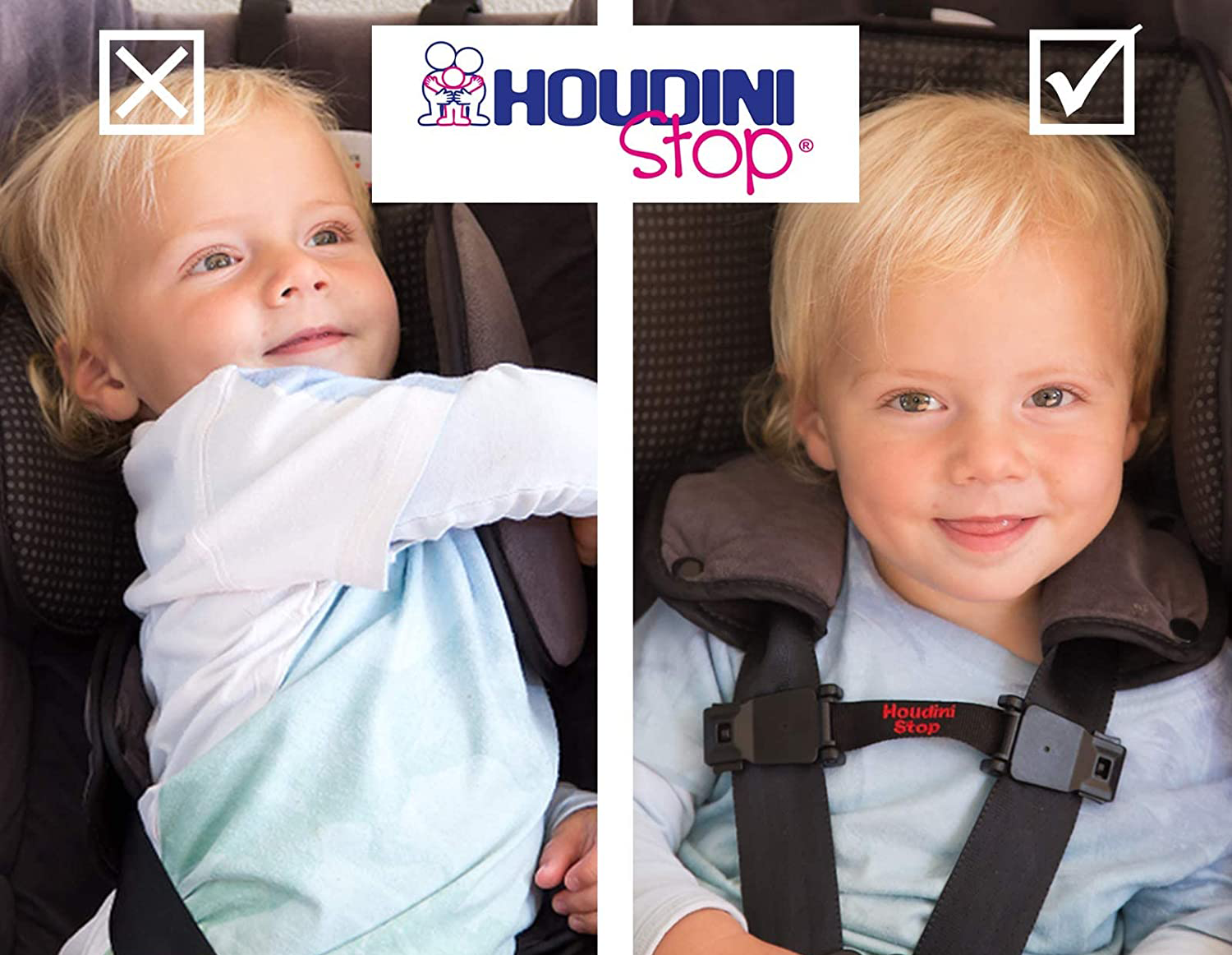 - SAFER CAR TRIPS, GUARANTEED! You’re getting more than just an easy to use, car seat chest clip. We guarantee the easy to install yet highly effective Houdini Stop will make car journeys safer for your little ones and much more relaxing for you.